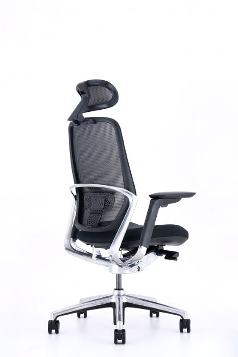 RESPALDO: Alto en red, ajustable en altura ASIENTO: Tapizado BASE GIRATORIA: Negra o de aluminio pulido MECANISMO: en aluminio pulido con bloqueo multiposicional