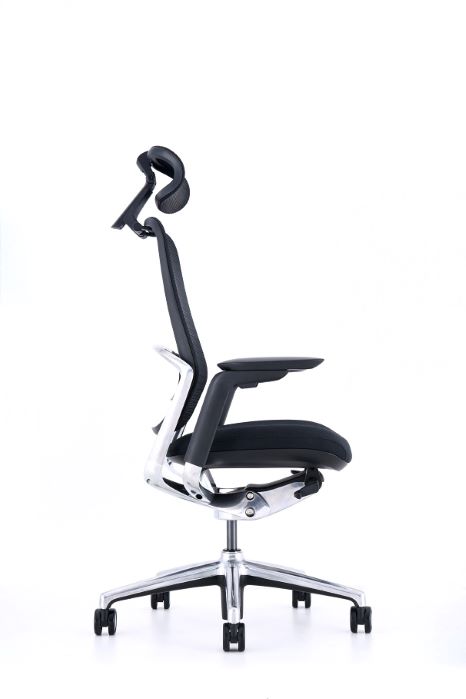 RESPALDO: Alto en red, ajustable en altura ASIENTO: Tapizado BASE GIRATORIA: Negra o de aluminio pulido MECANISMO: en aluminio pulido con bloqueo multiposicional